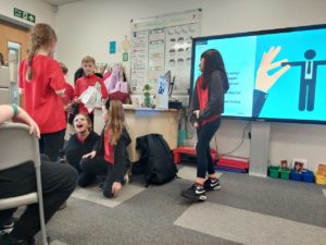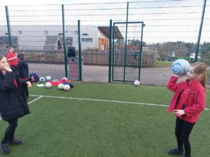 Emily – In PE, we were learning how to do a bounce pass and how to hit the ball with our palm in handball.