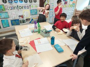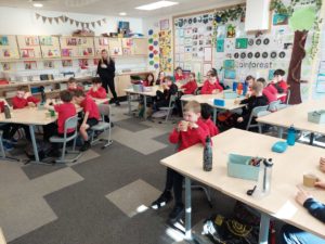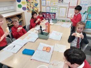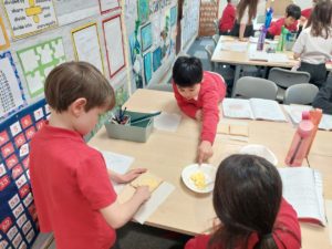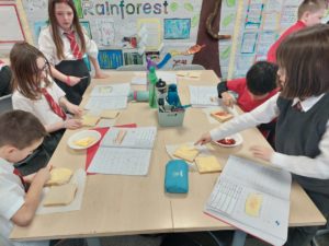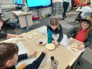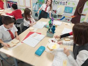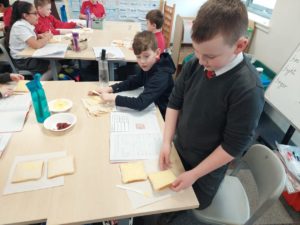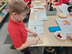 Harrison – In Writing we were writing instructions on how to make something fictional last week and then this week we were writing instructions on how to make jam and butter sandwiches. Then afterwards we followed our instructions to make and eat our own jam and butter sandwiches.