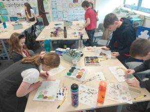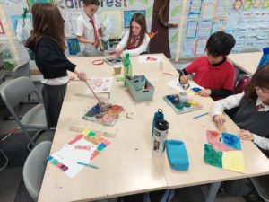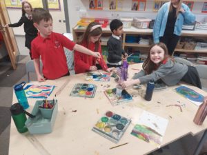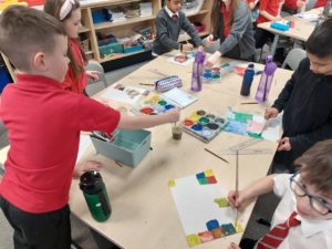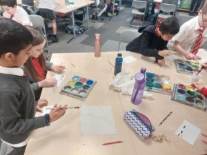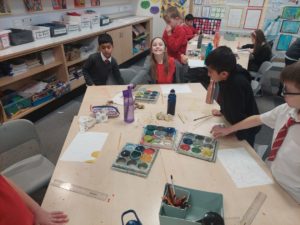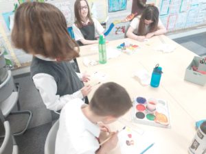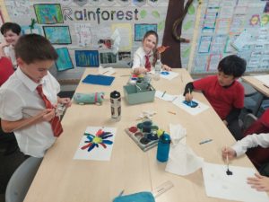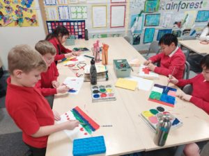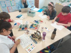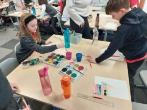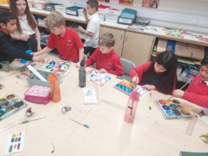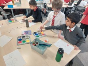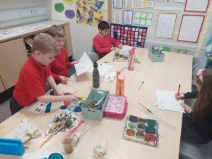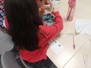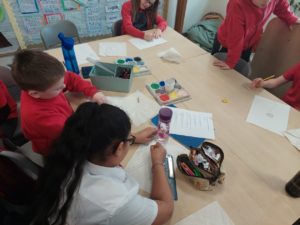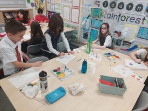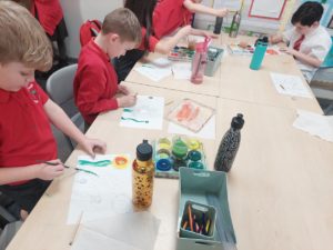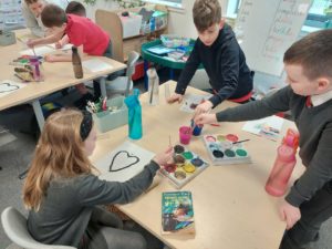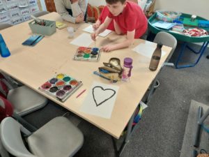 Emily – Last week in Art we looked at the difference between primary and secondary colours. This week were drawing love hearts and painting around them inspired by Jim Dine.