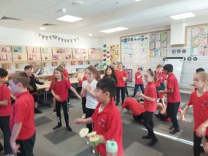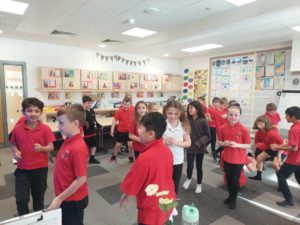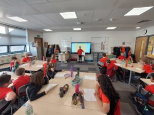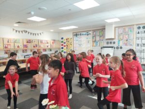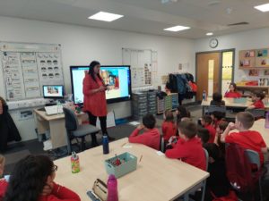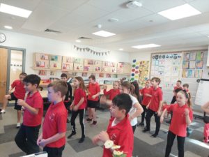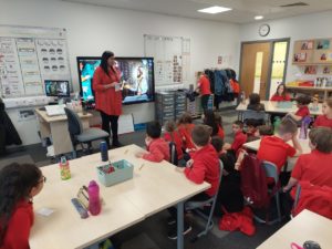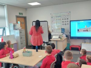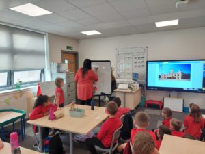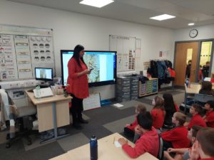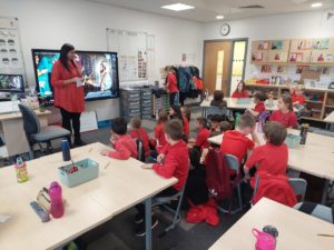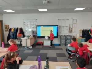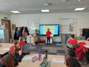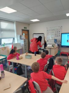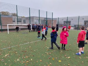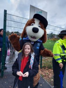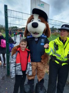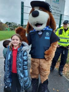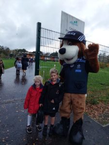 Emily – Some people walked to school this morning and took part in the walking bus on Wednesday and Friday. We got a sticker for walking to school and this morning we met Jackton the Dog.