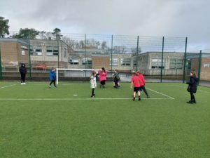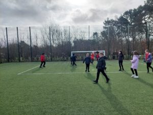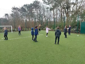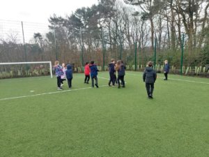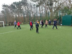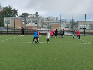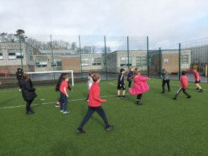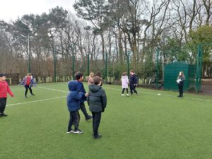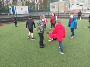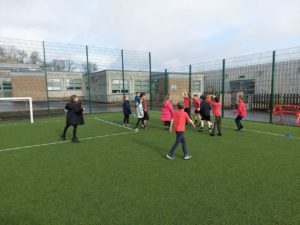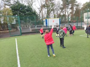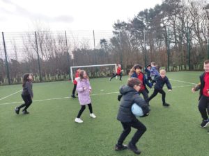 London – Today in PE, we were playing handball and first we split up in to 4 different teams. There was a goal keeper and other positions. Then 2 teams got in to 1 big team and same with the other then we played a big match at the end.