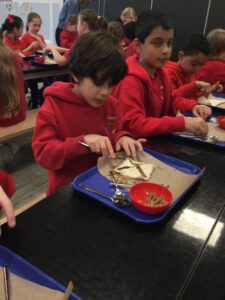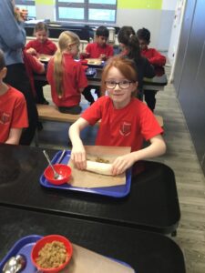 “Because of our Burns Topic near Robert Burns Day we hosted a Burns Supper where we had Scottish haggis pastry parcels. We also did some Scottish dancing.” Fraser