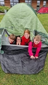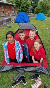 We have been practising working together as a team in preparation for our Big Day Hike on Thursday 19th June. We all managed to pitch and strike our tents (although the “easy” pop up tents were trickier than they looked!)
