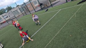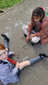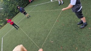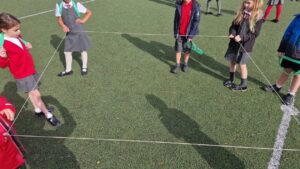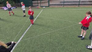 We worked on our skills and used Lego to play creationary, hurdles and tricky towers. Here we are testing that our hurdles can be hurdled.