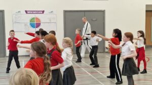 We had a taster session from a professional Taekwondo coach. We learned new flexibility drills and how to hold a pad safely so that we could practise kicking with each other!