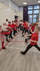 We were learning about time signatures this week. We used them to play games and we learned a new song too. We practised reading music and drumming along with it.