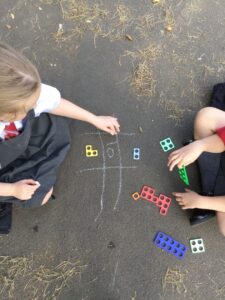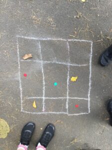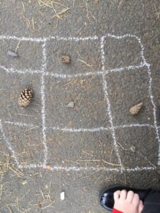 We used natural resources and counters to play ‘Tic-Tac-Toe.’