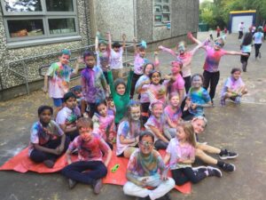 We had great fun this afternoon at the ‘Colour Run.’ Thank you very much for our sponsorship money and donations.  Unfortunately our photographs have not come out great, but we had great fun getting wet and covered in coloured powder.