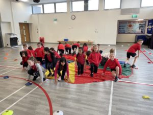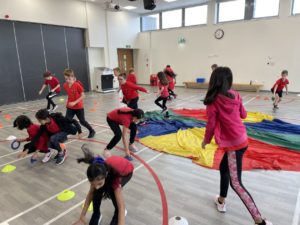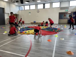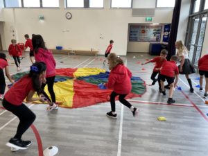 Emma – We played team games using the parachute in P.E. with Mr Atkinson!