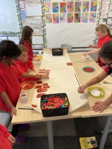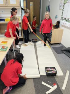 Retal – Upon returning to school we have been speaking about what we would like our classroom to look like. We decided to create a Platform 9 3/4 display for our class door as it links with the class novel. This took a lot of teamwork and effort! First, we had to apply our Maths skills by using our knowledge of measurement when calculating the height and width of the door. Then we worked in teams to sketch and paint pictures. Finally, we carefully cut out our display so that it would fit on top of the door. It was great fun designing this!
