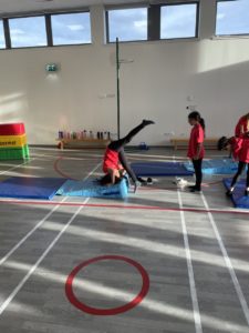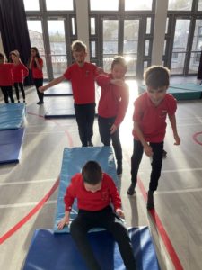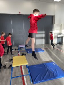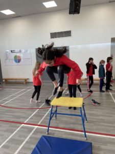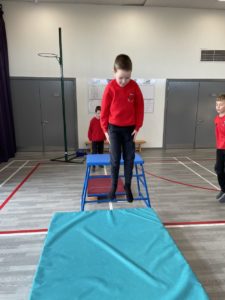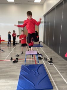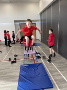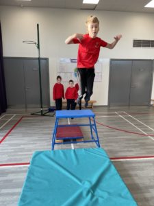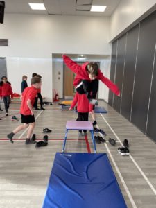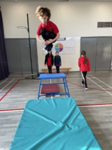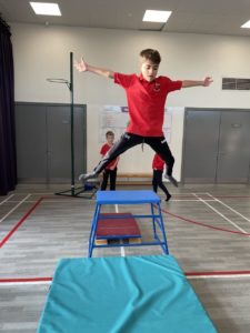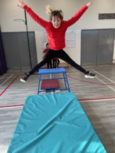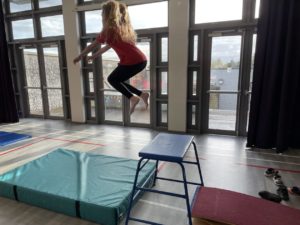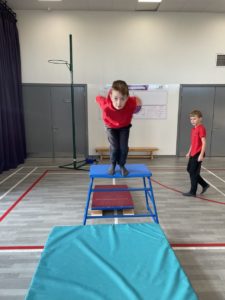 Mehr – In gymnastics we got out the apparatus to help us with practicing our different types of jumps – it was so much fun!