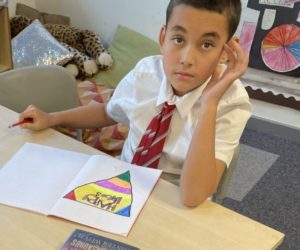 Harley – With Mrs Lamont we created happiness hero badges!