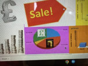 Aarohi – Using our survey results last week we used Microsoft Excel to create pie charts, bar graphs and scatter plot. Mr Atkinson challenged us to add relevant pictures under our labels. We also had to check that we used the correct scales and labels in our graphs.