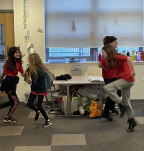 Emma – With Mr McMillan, we play a couple of games of Boccia because of the weather.
