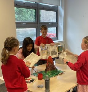 Sophie – In the final week of term we built volcanoes in groups. First we had to make a papier mâché mixture. We then placed this around plastic bottles, waited for them to dry and then painted them. The next day we took them outside and tried exploding them with Coke and Mentos!