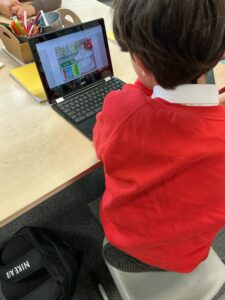 The class has also utilised their curiosity when investigating different types of litter and then they researched how long it takes for them to degrade. Pupils were shocked to learn about the Great Pacific Garbage Patch and the state of Arrochar’s beach after discovering it was acting as a sink where litter gathered when it washed ashore. Inspired from the Keep Scotland Beautiful online lesson, the children took notes on the cleanliness of a variety of Scottish waterways and explored what was being done to prevent them being polluted. To help illustrate how marine litter can travel all around the world the children created a map and tracked the journey of 28,000 plastic bath toys that fell overboard and were surprised to learn that even after all these years some rubber ducks were being found in America and Scotland! To deepen their knowledge of the conditions of oceans, the class typed up ‘blogs’ about major environmental incidents and they shared their views on the damage these have had on marine life.  We also discussed how using different colours, shapes, artistic styles and materials can help evoke emotions when looking at artwork. With this in mind, everyone created their own marine themed artwork using tissue paper and litter to highlight the impact humans have on sea life.