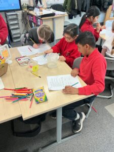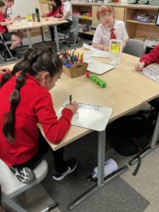 In Expressive Arts, we started some work on Drama skills.  We worked on freeze-framing, which is showing a specific scene starting frozen, moving around silently, and then freezing again.  We explored a poem called “The Loner” and tried to show the emotions in the poem.  Then we used “thought tracking” to put that character in different situations.