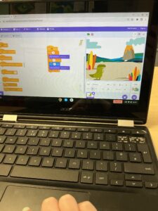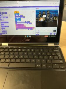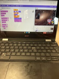 Today we used Scratch and we made some animations.  We were working out how to do things and practice (IR)
