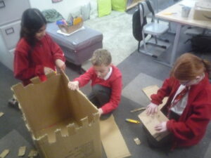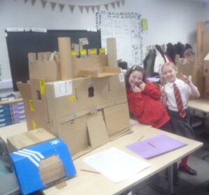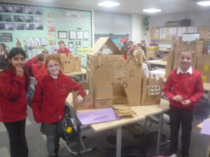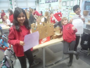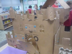 From there, we worked in groups to design a castle that could withstand an attack and then we used the Make-Do kits to create a model during the Open Afternoons.