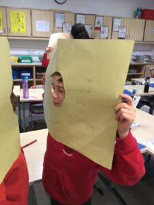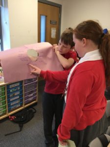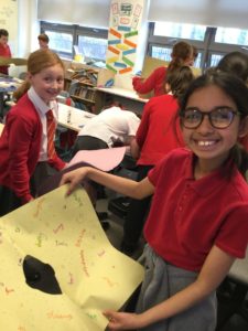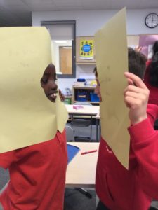 “With Mrs Hobson we cut a hole in a piece of paper the shape of our face and we put all the things that made us a good friend around the cut out. Then we put our faces through the hole.” Sophia