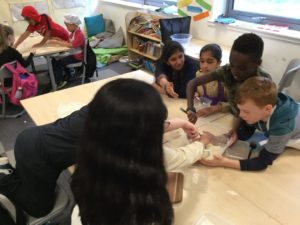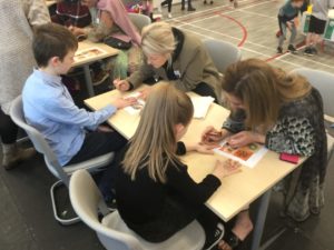 “We went and got henna. While we waited there was traditional outfits to try on and there was pin the moon on the mosque games. There was also a big piece of paper to write Eid mubarak on. There was a station to design a prayer mat and there was a throwing game.” Lily