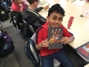 “We made our own mehndi designs on cut outs of our hands. Then we stuck them to coloured paper.” Harry