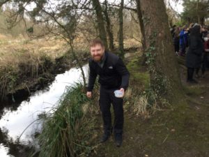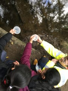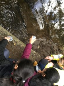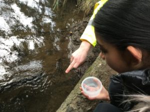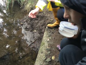 ” On Monday we went to release our fish with Toby from the Clyde River Foundation. We went to the local river where we were given a tub with 4-6 fish in it.” Harper