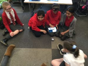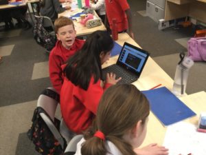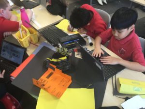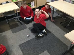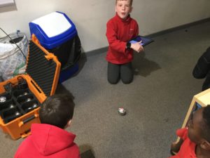 “We played with some Sphero robots. We controlled it with the Ipads. We used some coding to make them move. You could also draw a route for it to follow. We worked in groups.” Mueez and Mason