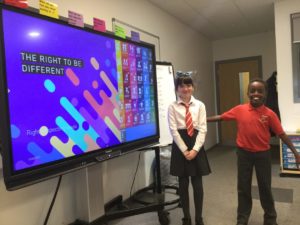 “As part of rights respecting week we thought of a right. We had to draw a picture of the right being respected and on the other side the right not being respected.” Mason