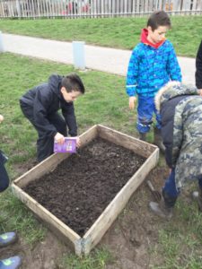 “In the woodland we were planting wild flower seeds so our woodland is healthier. A few weeks ago we cleared out some planters and we also found some other spots to sew seeds. We are hoping to grow some flowers to help bees and other pollinators.” Harper
