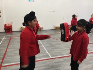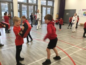 This week we had a taekwondo taster session. It was great fun! We used the pads and developed different punching and kicking skills.