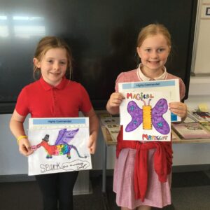We are very proud of these girls in our class. They won highly commended in our Maths Week Mathscot competition. Well done!