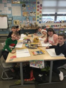 This week we were learning about tinting in Art. We created backgrounds using tinting before creating  a silhouette of a castle. The children also thought about the features of a castle when creating their design. The children enjoyed this learning experience and their finished artwork looks great!