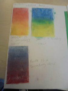 Sophie W- In art we drew a sphere and then we used yellow and red to blend orange in the middle. Then we added some shadow and highlights. Finally we stuck it to some complementary colours.