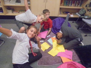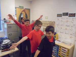 Myra- For maths week Scotland we were learning about the beauty of maths through dance. First we were watching videos and we were making storyboards using compass points and which direction they were facing and their actions. We got into groups and had to create a symmetrical dance to perform.