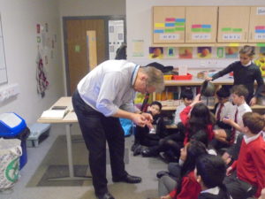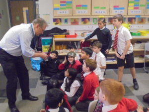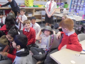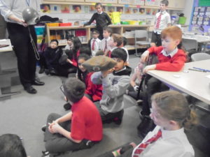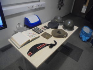 Mr Blackwood, the music instructor, came in to our class and brought some WW2 artefacts. He was talking about what each of the artefacts are, such as a medal which was given out to women who had 8 or more children, some hats and helmets. – Ismail