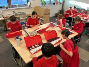On Thursday afternoon with Miss Lamb, P6a started learning how to play the Glockenspiel. We started with learning ‘Twinkle Twinkle Little Star.’ We’re looking forward to learning more notes next week with the aim of learning a pop song!