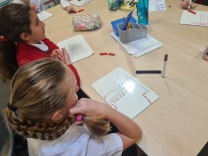 ‘We looked for different examples of Maths in our houses and in nature. I found a leaf and a pattern which were symmetrical.!’- Amy