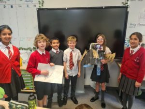‘Our dragon was called George the Swedish Meatball Dragon. His personality is really nice but he has a dark side. Most of his body was made from cardboard and green paper. We made the wings with more cardboard and ice lolly sticks and blue paper. We communicated well as a team and we got the job done.’- Andrew