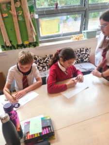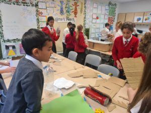 ‘Our Dragon was called Draco and he had a Slytherin personality. We used cardboard and we split up the jobs to do different parts. First I made the head then I made the eyes with Inaaya.’ -Emilia