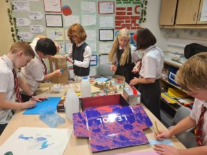 ‘Our dragon was called George the Swedish Meatball Dragon. His personality is really nice but he has a dark side. Most of his body was made from cardboard and green paper. We made the wings with more cardboard and ice lolly sticks and blue paper. We communicated well as a team and we got the job done.’- Andrew