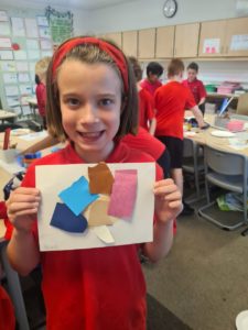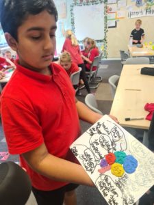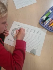 ‘We looked for different examples of Maths in our houses and in nature. I found a leaf and a pattern which were symmetrical.!’- Amy
