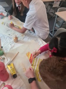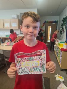 ‘Our Dragon was called Bubble Beans, he is a blue bean dragon. We stuck cardboard boxes together, covered them in paper with a design. We put lollipop sticks under the wings so they could stick out and then we stuck it all together. It was fun!’- Callum