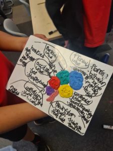 ‘Our Dragon was called Draco and he had a Slytherin personality. We used cardboard and we split up the jobs to do different parts. First I made the head then I made the eyes with Inaaya.’ -Emilia