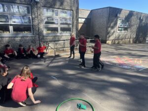 This week in P6b we have been enjoying the spring weather and have taken our learning outdoors. On Tuesday, the learners put their playzone leadership training sessions into practice by leading a PE session with P2c. Then we took our maths learning outdoors to create a range of games, such as number relay races, calculation tig and continued our learning about algebraic expressions by solving expressions using chalk.