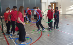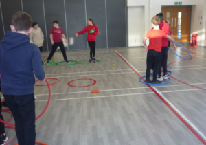 Today we did PE. We played Huskies in the Snow, we had 5 hoops and we had to make our way across the PE hall.On the second round there was bean bags pom poms all over the Gym hall and we had to pick up the bean bags and collect as many as we could and get back to the start. We also got into teams and played dodgeball. We also did maths and literacy.