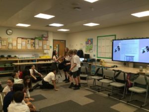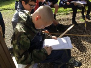 Hello everyone, welcome to our class blog. This week we started on Monday by playing  rugby in the muga. Then after that we wrote structured poems, we selected different types of poems to write following the structure of ones like limericks and haikus. In the afternoon we went to the woodland and we were measuring trees using different techniques. It was a lot of fun and a bit confusing! Then on Tuesday in indoor P.E. We played netball where we split into 4 teams each of them getting a game against all the other teams. After break on Tuesday we were reading our book Cloud Busting. When the two characters in the book went cloud busting we went outside to do it ourselves. We found lots of different shapes in the clouds. We then sat in the playground to finish the novel. After that we did máths. One group did decimal fractions, another did algebra and the last group did angles. On Wednesday Mr Eadie was in with us for the whole day and we played wordle and maths games. Also at the end of the day we used oil pastels to draw a volcano picture we also used paint. Then on Thursday with Mrs Hutchinson we did drama called Bus Stop and there were 5 people up on stage we had to act out different roles that Mrs Hutchinson either gave us or we could choose. On Friday we did maths, in maths we did decimal fractions after that we had assembly and they told us senior prefects and we also got find out when we could vote for the new Crookfur values poster that will be displayed all around the school for the next few years and so after that we finished all our work that we haven’t done this week and that is what we did this week thanks for listening. Come back next week to hear about our week.