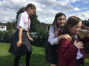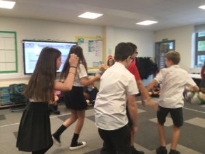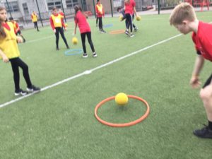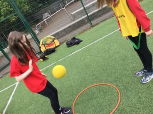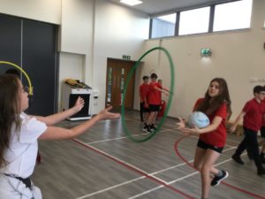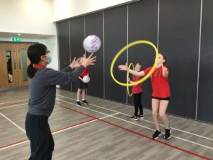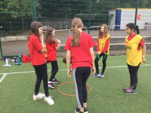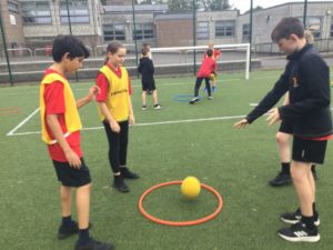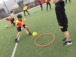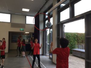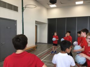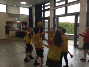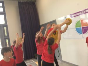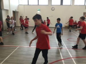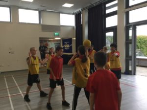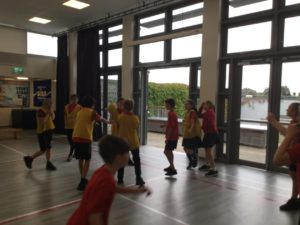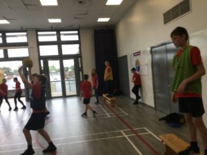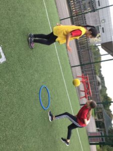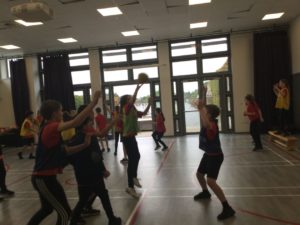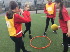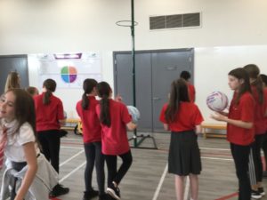 In P.E we played netball and there were five different teams. There was dark blue, light blue, pink, red and green. We have improved and now understand the rules and therefore we are playing to win!