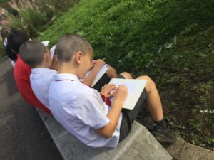 This week was Maths Week Scotland, in maths we made curves with straight lines called Parabolic lines and tessellations art.