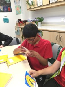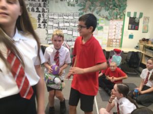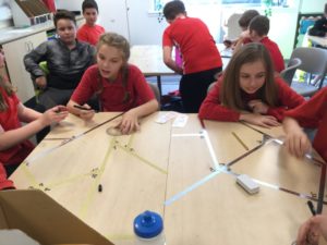 We had a science afternoon linked to our Extreme Earth topic and there were five tasks. The first task was to put some cubes in the middle of 2 tables, with a gap in between, then we put a cardboard piece in the middle (the epicentre) and we had to build a house and then hit the bottom with a ruler to see if it stayed. Task 2 was to build a structure to hold a big ball on a wobble board. If it held you succeeded but if it flew off you failed. Task 3 was to build a house out of toothpicks and marshmallows and balance it on jelly. If it fell apart, you failed, if it stayed up then you passed the test. But you could only use 20 marshmallows and 20 toothpicks.Task 4 was to build a tall lego house and put it on a wobble board and you had to see if it would break. Task 5 was 4 people would sit on chairs and lean back and put their heads on someone else’s lap and then some people would move the chairs backwards and try to stay up.